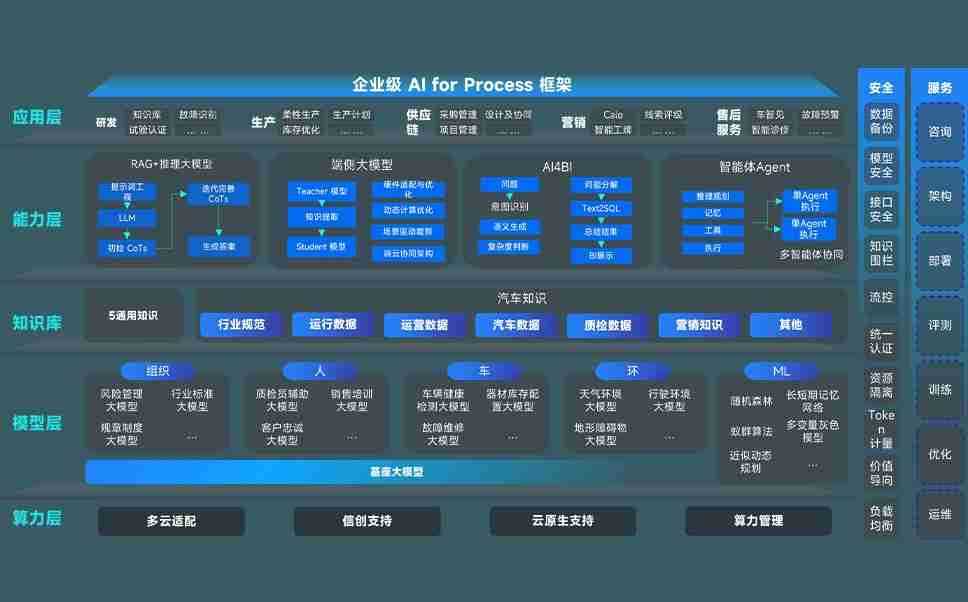 EZWEB问学智车解决方案是一套基于AI技术的汽车行业智能化系统,,,,覆盖从底层算力到顶层AI应用的全栈方案。。方案由算力层、、、模型层和应用层组成:算力层,,,方案支持多种一体机配置,,,,具备云端灵活部署、、、多云适配以及动态优化计算资源的能力;模型层,,,,EZWEB问学平台版提供了企业级AI应用一站式构建与管理平台,,,,支持基于后训练强化技术的汽车企业专属模型的训练、、、评测和运营;应用层,,,,EZWEB问学DeepSeek版提供包括超级员工、、智能招采、、、智能营销、、智能客服、、、AI for BI等一系列解决方案,,,可助力汽车行业实现数字化转型,,让管理更智能、、响应更敏捷。。